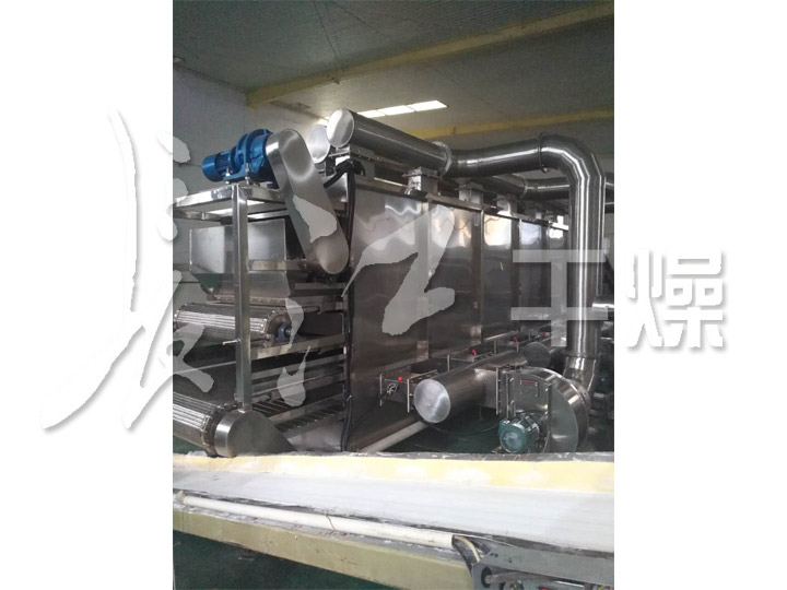 干燥面積、風(fēng)壓、風(fēng)量、干燥溫度網(wǎng)帶運(yùn)轉(zhuǎn)速度均可調(diào)節(jié).以適應(yīng)蔬菜的特性及品質(zhì)要求。